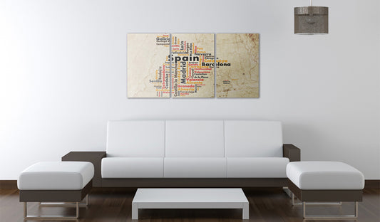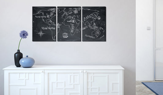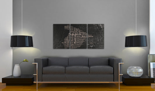 Weltkarte als Leinwandbild - Map of Spain on the blackboard (3-teilig)
