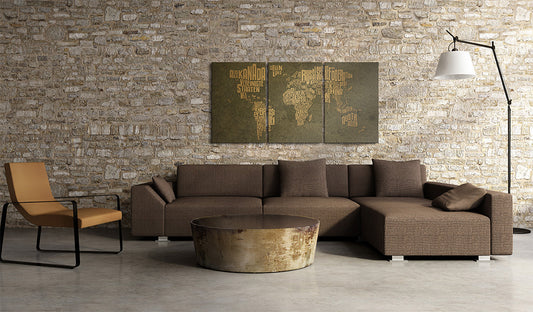 Weltkarte als Leinwandbild - Weltkarte in Beige und Braun