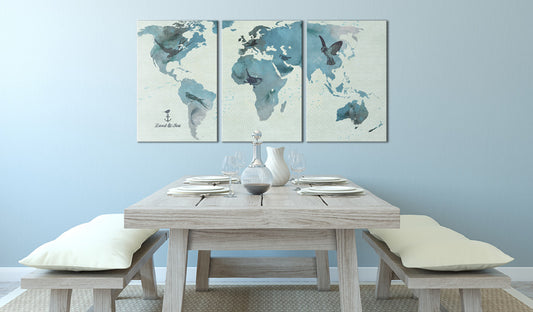 Weltkarte als Leinwandbild - Kontinente wie Ozeane