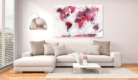 Weltkarte als Leinwandbild - World Map: Red Watercolors (1 Part) Wide